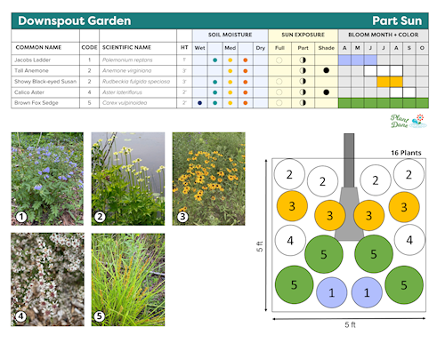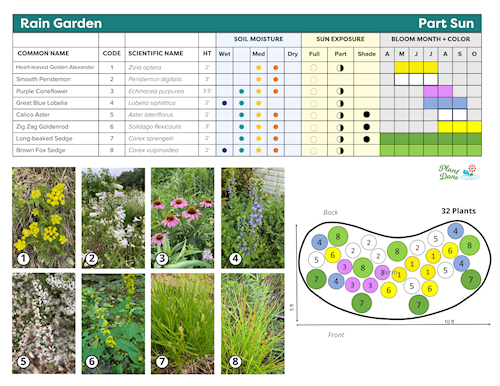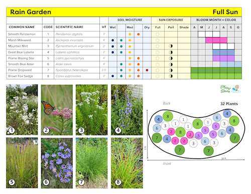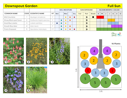There are three primary types of gardens that feature native plants: rain gardens, downspout gardens, and native gardens.