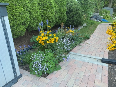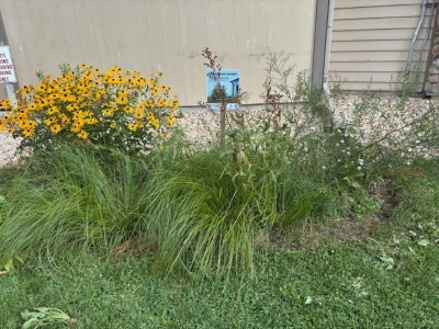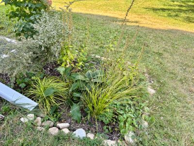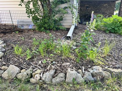 If you have limited space or aren't quite ready to install a rain garden, a downspout garden is a good option. Like rain gardens, downspout gardens are designed to help roof runoff soak into the ground. However, they’re easier to install because they don’t require digging a hole or basin to capture the water. Even a small (5'x5') downspout garden can have a huge impact. These small gardens are located near the discharge of a downspout, have compost added to the soil, and are planted with native plants or grasses.